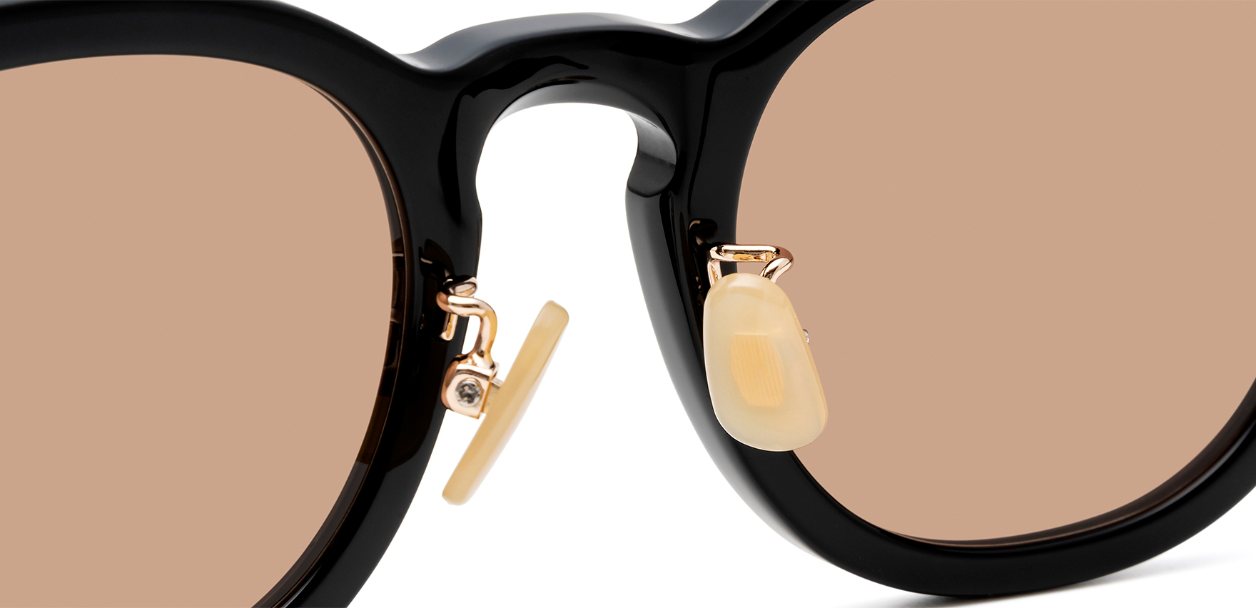 Laboroは、雑誌Oggi×ヘア&メイクアップアーティスト・長井かおりさん×眼鏡市場のトリプルコラボ商品。今回は、Oggiで活躍中のスタイリスト・渡辺智佳さんにも加わっていただきました。ラテン語で“働く”を意味する「Laboro」(ラボーロ)は、仕事もプライベートも楽しく・美しく・充実した毎日を過ごす女性に贈るブランドです。今回のサングラスは、通勤や仕事中でも気軽に取り入れていただけるよう、フレームサイズやレンズカラーを厳選して仕上げました。Lab-1001は、トレンド感のある太めのフレームが特徴的なウェリントンシェイプで、レンズシェイプにボリュームを持たせることで、顔立ちにハンサムな印象をプラスします。鍵穴のような形状が施されたキーホールブリッジを採用し、クラシカルな要素を取り入れることで、洗練された印象に仕上げています。また、あえてレンズ表面にカーブの無いフラットレンズを採用しており、ふとした瞬間にミラーレンズのようにキラッと光が反射することで、日常使いしやすいサングラスにさりげない華やかさをプラスします。鼻パッドは、肌になじみやすくメイクの邪魔をしないゴールドパール色です。クリングス付きのため、鼻の高さや形に合わせて細かな調整が可能です。これにより、まつ毛がレンズに当たりにくく、鼻への負担を軽減し、ずり落ちにくい快適なかけ心地でご着用いただけます。