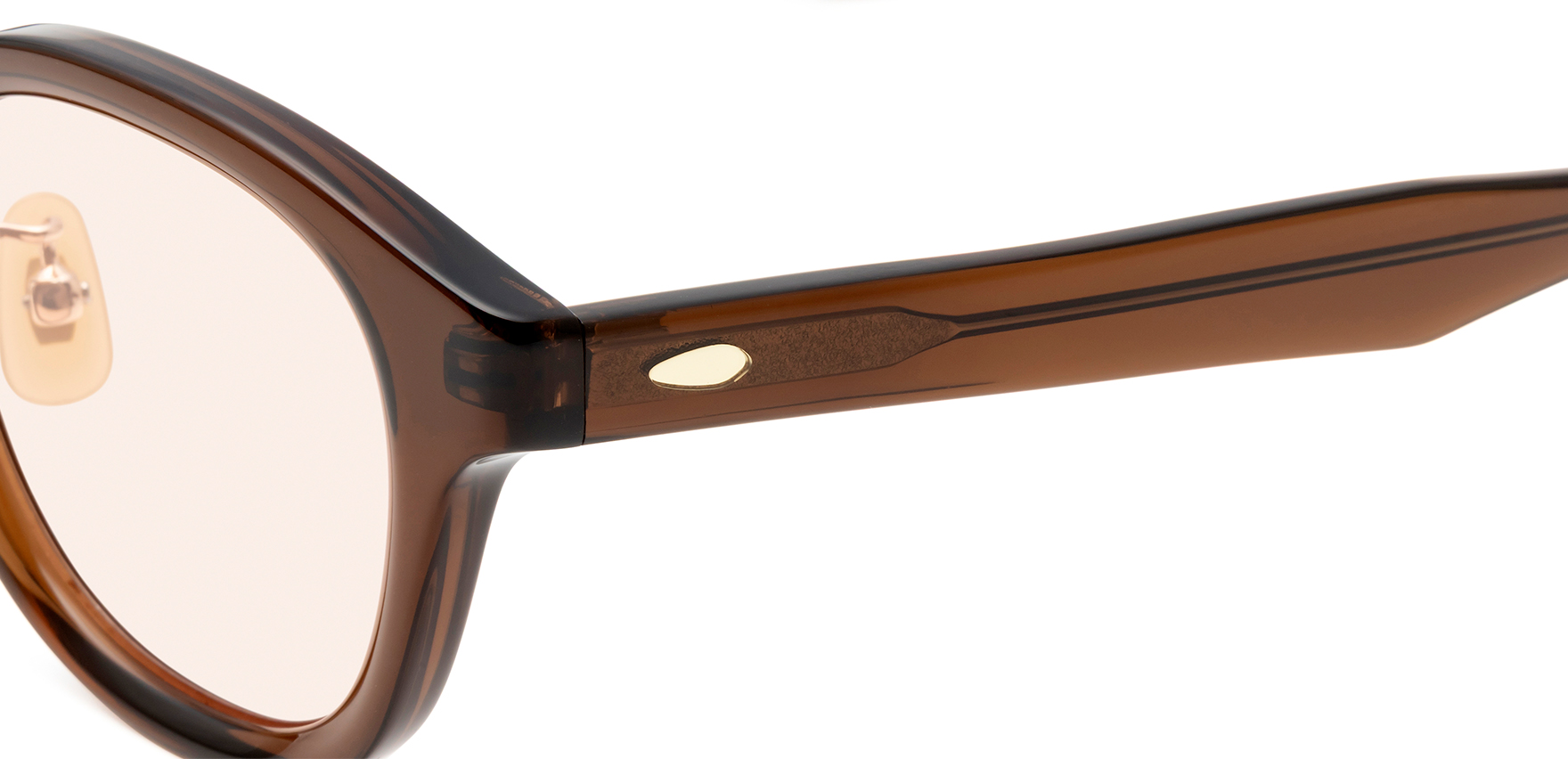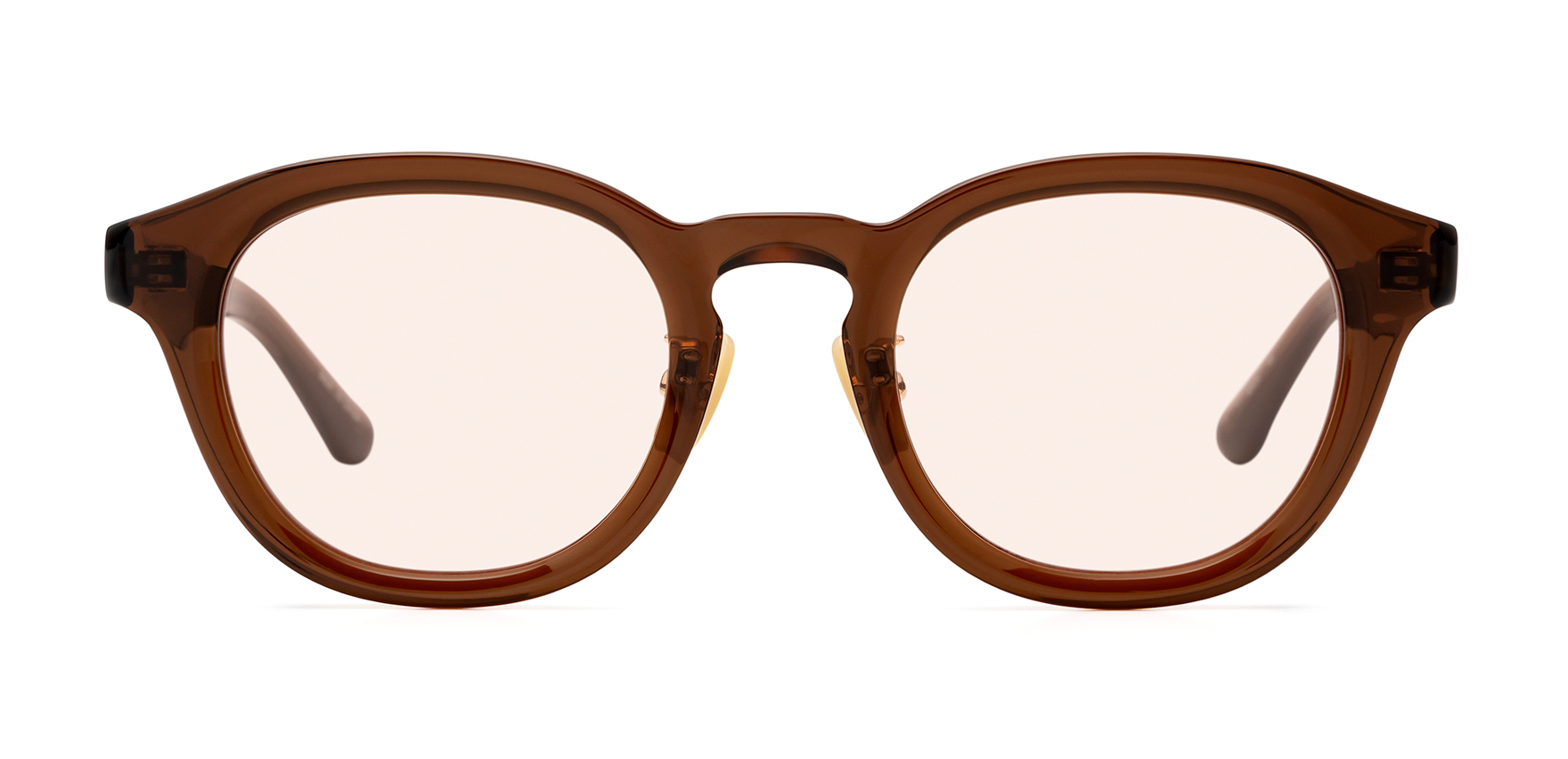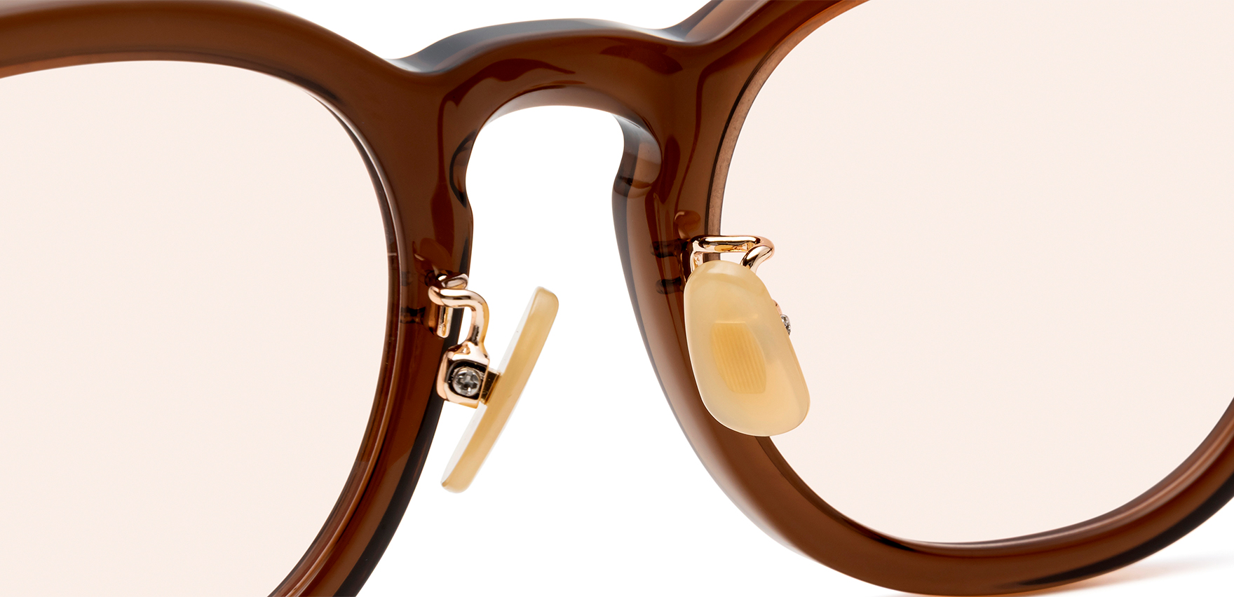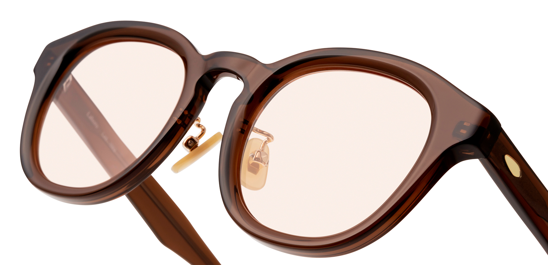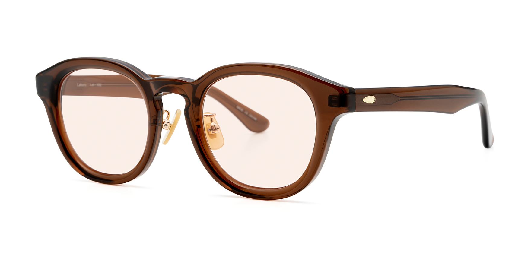 Laboroは、雑誌Oggi×ヘア&メイクアップアーティスト・長井かおりさん×眼鏡市場のトリプルコラボ商品。今回は、Oggiで活躍中のスタイリスト・渡辺智佳さんにも加わっていただきました。ラテン語で“働く”を意味する「Laboro」(ラボーロ)は、仕事もプライベートも楽しく・美しく・充実した毎日を過ごす女性に贈るブランドです。今回のサングラスは、通勤や仕事中でも気軽に取り入れていただけるよう、フレームサイズやレンズカラーを厳選して仕上げました。Lab-1002は、トレンド感のある太めのフレームが特徴的なウェリントンシェイプで、レンズシェイプにボリュームを持たせることで、顔立ちにハンサムな印象をプラスします。鍵穴のような形状が施されたキーホールブリッジを採用し、クラシカルな要素を取り入れることで、洗練された印象に仕上げています。また、あえてレンズ表面にカーブの無いフラットレンズを採用しており、ふとした瞬間にミラーレンズのようにキラッと光が反射することで、日常使いしやすいサングラスにさりげない華やかさをプラスします。鼻パッドは、肌になじみやすくメイクの邪魔をしないゴールドパール色です。クリングス付きのため、鼻の高さや形に合わせて細かな調整が可能です。これにより、まつ毛がレンズに当たりにくく、鼻への負担を軽減し、ずり落ちにくい快適なかけ心地でご着用いただけます。
