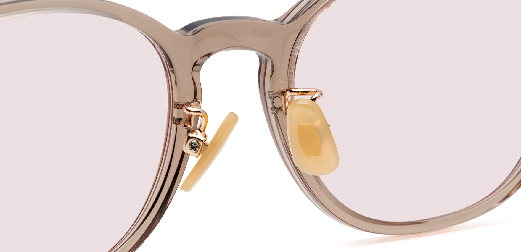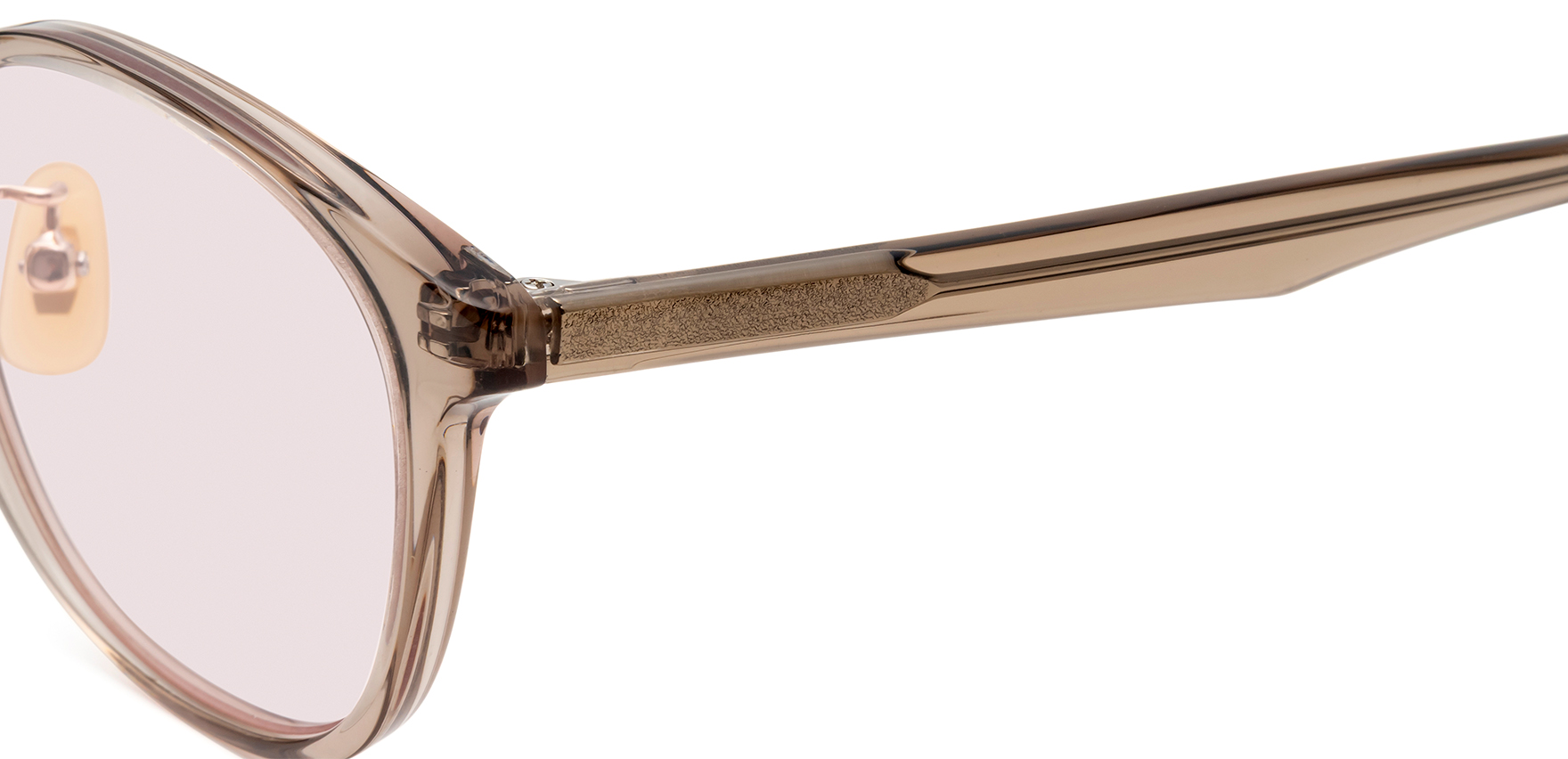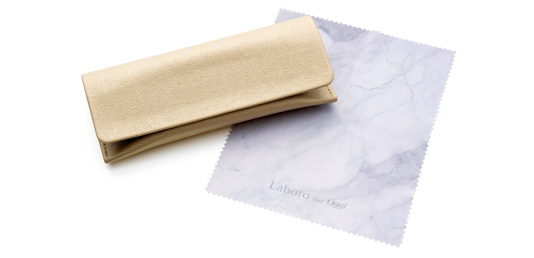 Laboroは、雑誌Oggi×ヘア&メイクアップアーティスト・長井かおりさん×眼鏡市場のトリプルコラボ商品。今回は、Oggiで活躍中のスタイリスト・渡辺智佳さんにも加わっていただきました。ラテン語で“働く”を意味する「Laboro」(ラボーロ)は、仕事もプライベートも楽しく・美しく・充実した毎日を過ごす女性に贈るブランドです。今回のサングラスは、通勤や仕事中でも気軽に取り入れていただけるよう、フレームサイズやレンズカラーを厳選して仕上げました。Lab-1003は、ベーシックでかけやすい細めフレームのウェリントンシェイプです。メガネ感覚で取り入れやすく、どんなコーディネートにも自然と馴染むので、いつものスタイルをワンランクアップしてくれます。鍵穴のような形状が施されたキーホールブリッジを採用し、クラシカルな要素を取り入れることで、洗練された印象に仕上げています。また、あえてレンズ表面にカーブの無いフラットレンズを採用しており、ふとした瞬間にミラーレンズのようにキラッと光が反射することで、日常使いしやすいサングラスにさりげない華やかさをプラスします。鼻パッドは、肌になじみやすくメイクの邪魔をしないゴールドパール色です。クリングス付きのため、鼻の高さや形に合わせて細かな調整が可能です。これにより、まつ毛がレンズに当たりにくく、鼻への負担を軽減し、ずり落ちにくい快適なかけ心地でご着用いただけます。