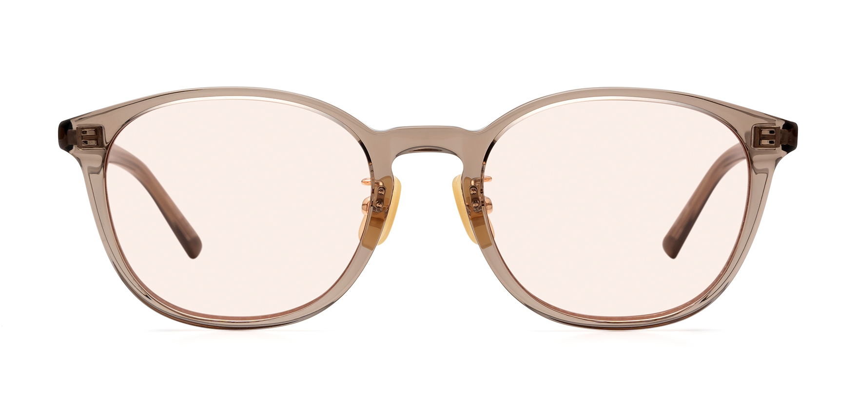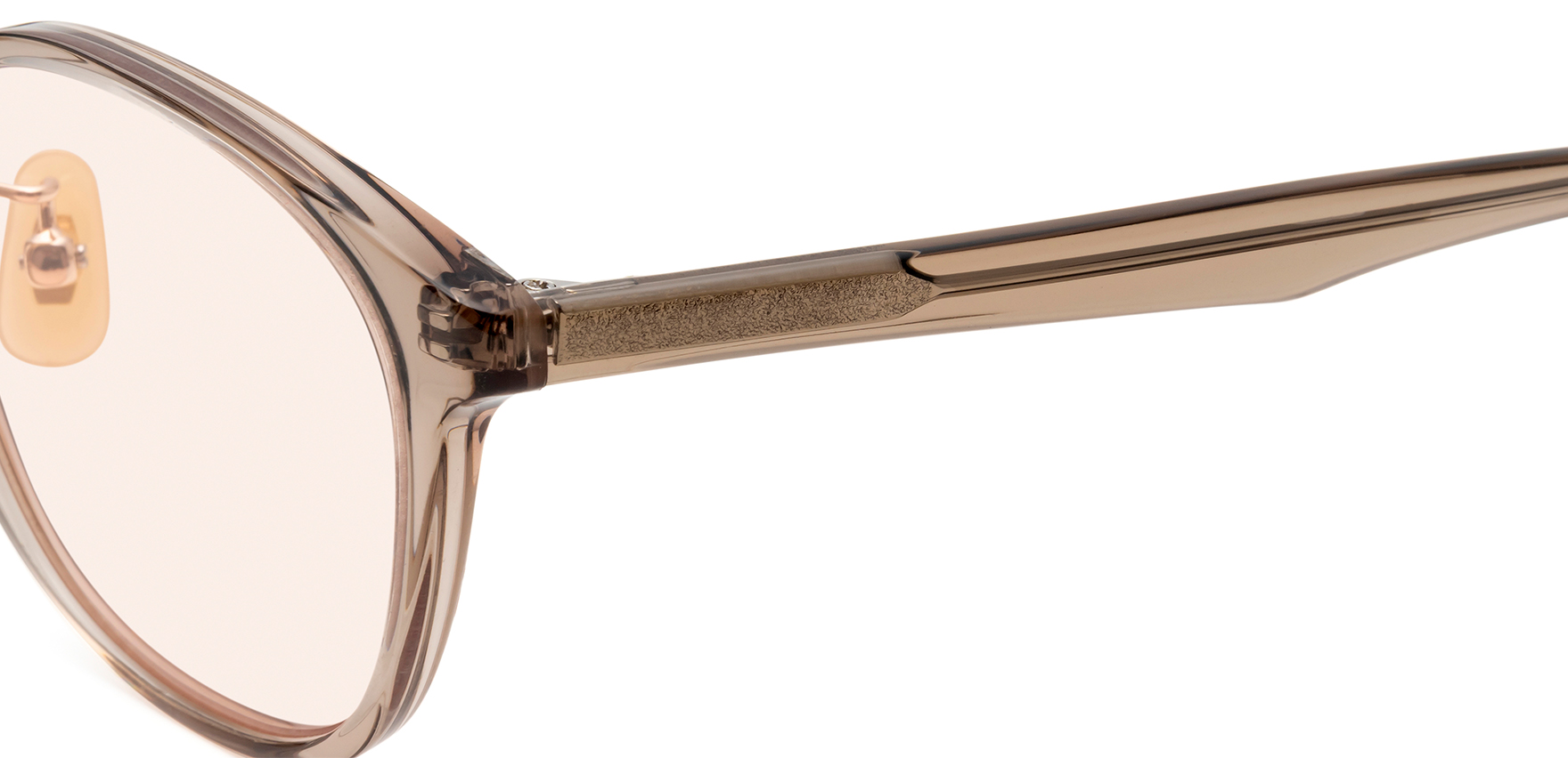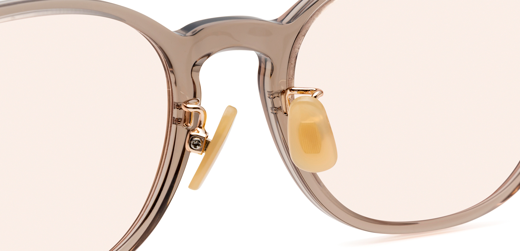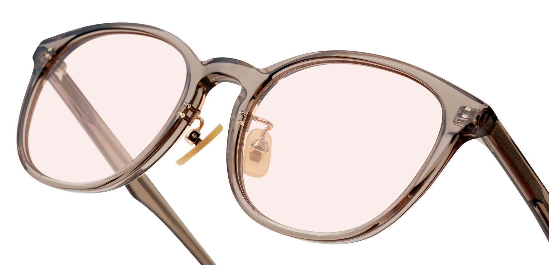 Laboroは、雑誌Oggi×ヘア&メイクアップアーティスト・長井かおりさん×眼鏡市場のトリプルコラボ商品。今回は、Oggiで活躍中のスタイリスト・渡辺智佳さんにも加わっていただきました。ラテン語で“働く”を意味する「Laboro」(ラボーロ)は、仕事もプライベートも楽しく・美しく・充実した毎日を過ごす女性に贈るブランドです。今回のサングラスは、通勤や仕事中でも気軽に取り入れていただけるよう、フレームサイズやレンズカラーを厳選して仕上げました。Lab-1003は、ベーシックでかけやすい細めフレームのウェリントンシェイプです。メガネ感覚で取り入れやすく、どんなコーディネートにも自然と馴染むので、いつものスタイルをワンランクアップしてくれます。鍵穴のような形状が施されたキーホールブリッジを採用し、クラシカルな要素を取り入れることで、洗練された印象に仕上げています。また、あえてレンズ表面にカーブの無いフラットレンズを採用しており、ふとした瞬間にミラーレンズのようにキラッと光が反射することで、日常使いしやすいサングラスにさりげない華やかさをプラスします。鼻パッドは、肌になじみやすくメイクの邪魔をしないゴールドパール色です。クリングス付きのため、鼻の高さや形に合わせて細かな調整が可能です。これにより、まつ毛がレンズに当たりにくく、鼻への負担を軽減し、ずり落ちにくい快適なかけ心地でご着用いただけます。