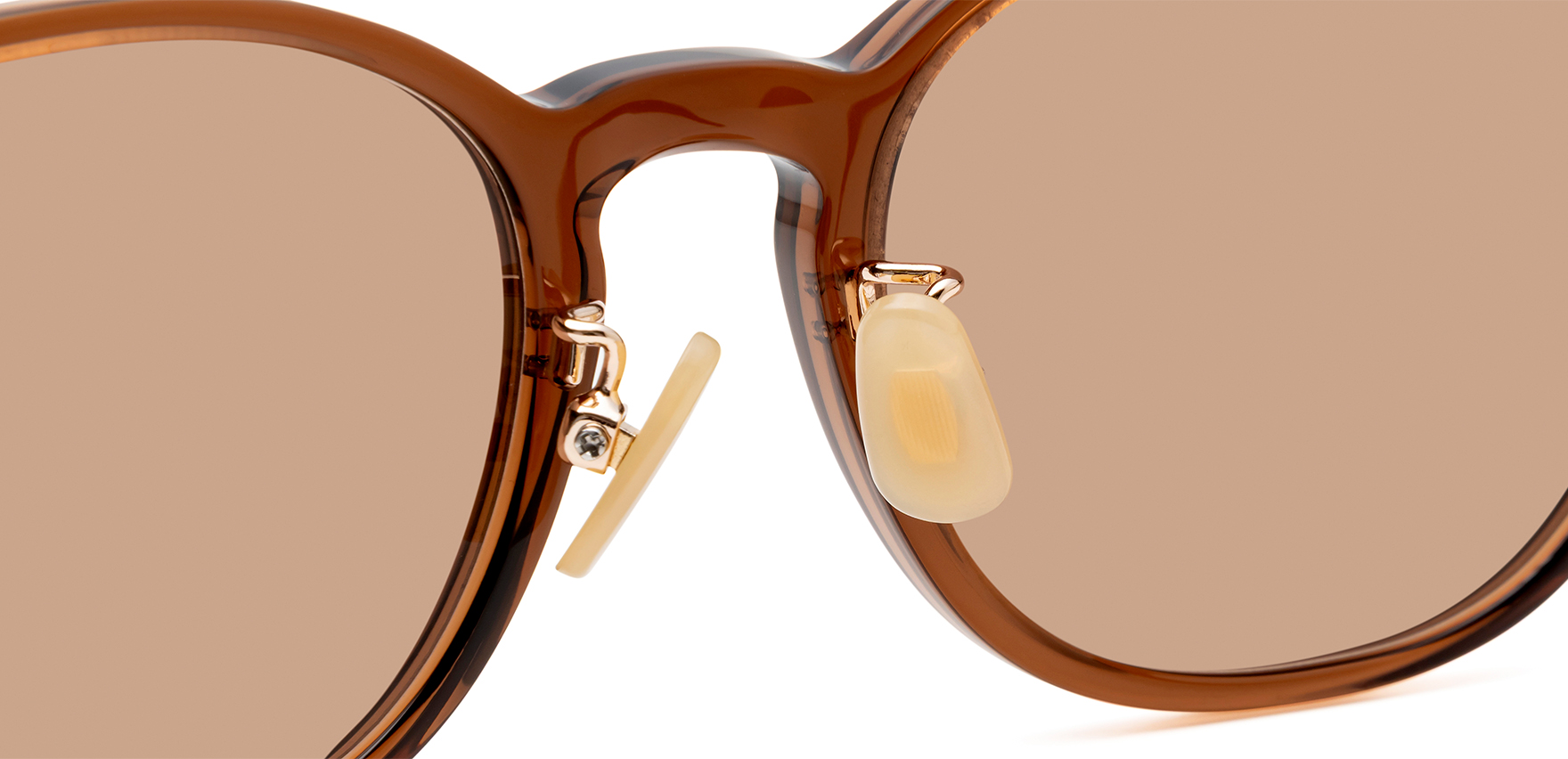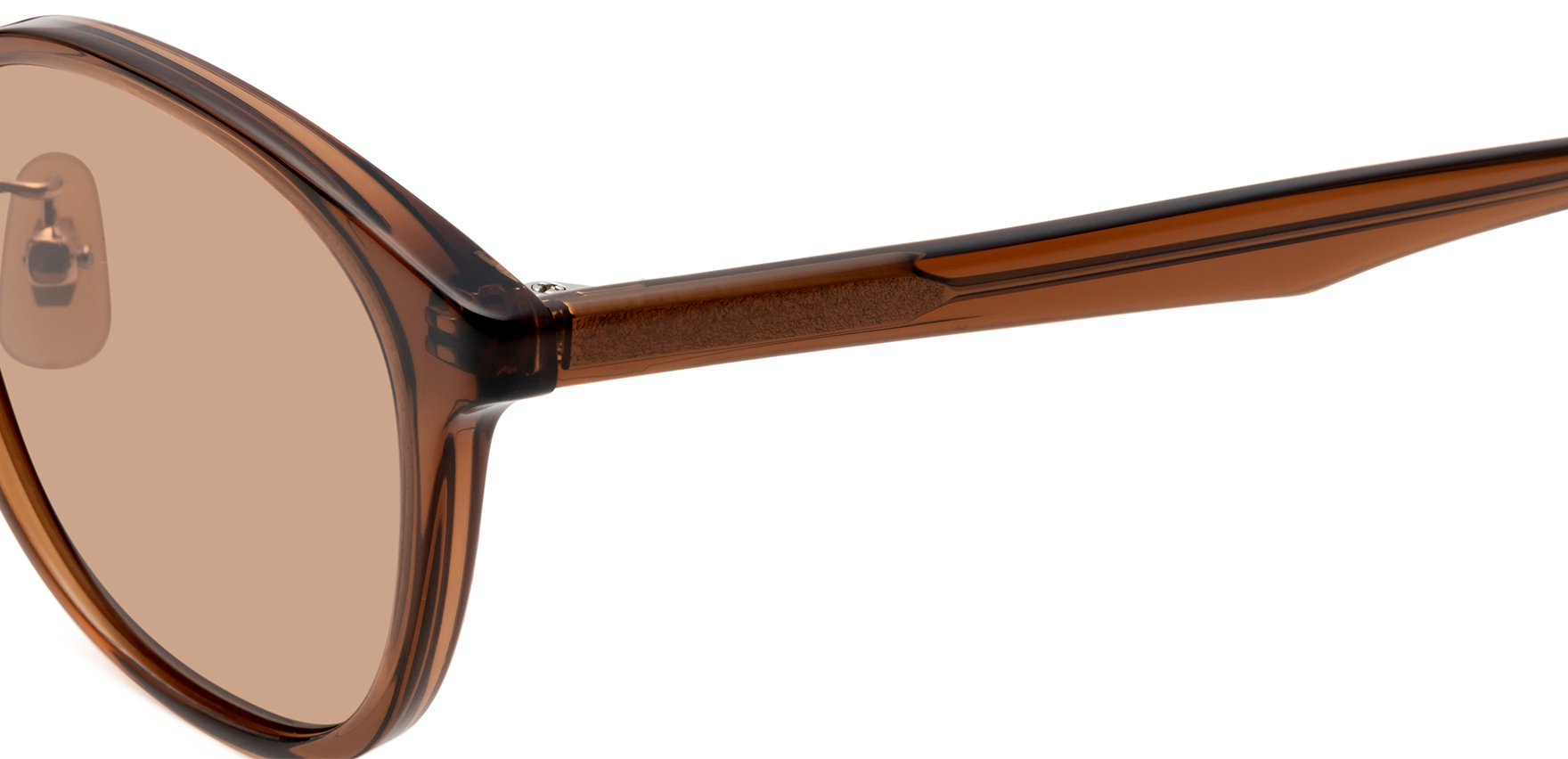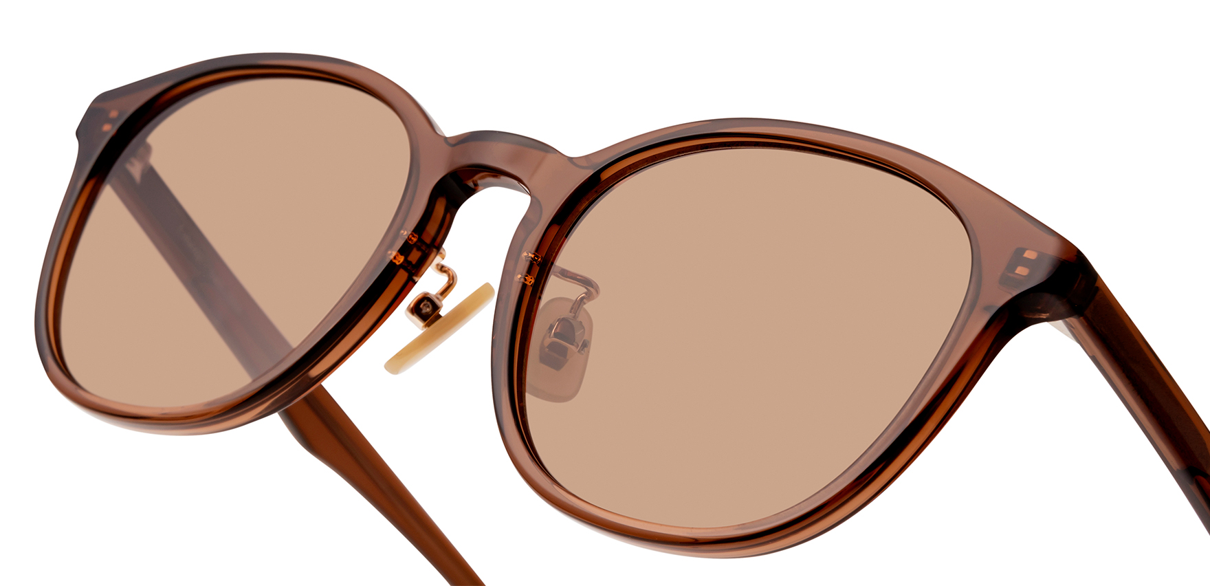 Laboroは、雑誌Oggi×ヘア&メイクアップアーティスト・長井かおりさん×眼鏡市場のトリプルコラボ商品。今回は、Oggiで活躍中のスタイリスト・渡辺智佳さんにも加わっていただきました。ラテン語で“働く”を意味する「Laboro」(ラボーロ)は、仕事もプライベートも楽しく・美しく・充実した毎日を過ごす女性に贈るブランドです。今回のサングラスは、通勤や仕事中でも気軽に取り入れていただけるよう、フレームサイズやレンズカラーを厳選して仕上げました。Lab-1004は、ベーシックでかけやすい細めフレームのウェリントンシェイプです。メガネ感覚で取り入れやすく、どんなコーディネートにも自然と馴染むので、いつものスタイルをワンランクアップしてくれます。鍵穴のような形状が施されたキーホールブリッジを採用し、クラシカルな要素を取り入れることで、洗練された印象に仕上げています。また、あえてレンズ表面にカーブの無いフラットレンズを採用しており、ふとした瞬間にミラーレンズのようにキラッと光が反射することで、日常使いしやすいサングラスにさりげない華やかさをプラスします。鼻パッドは、肌になじみやすくメイクの邪魔をしないゴールドパール色です。クリングス付きのため、鼻の高さや形に合わせて細かな調整が可能です。これにより、まつ毛がレンズに当たりにくく、鼻への負担を軽減し、ずり落ちにくい快適なかけ心地でご着用いただけます。