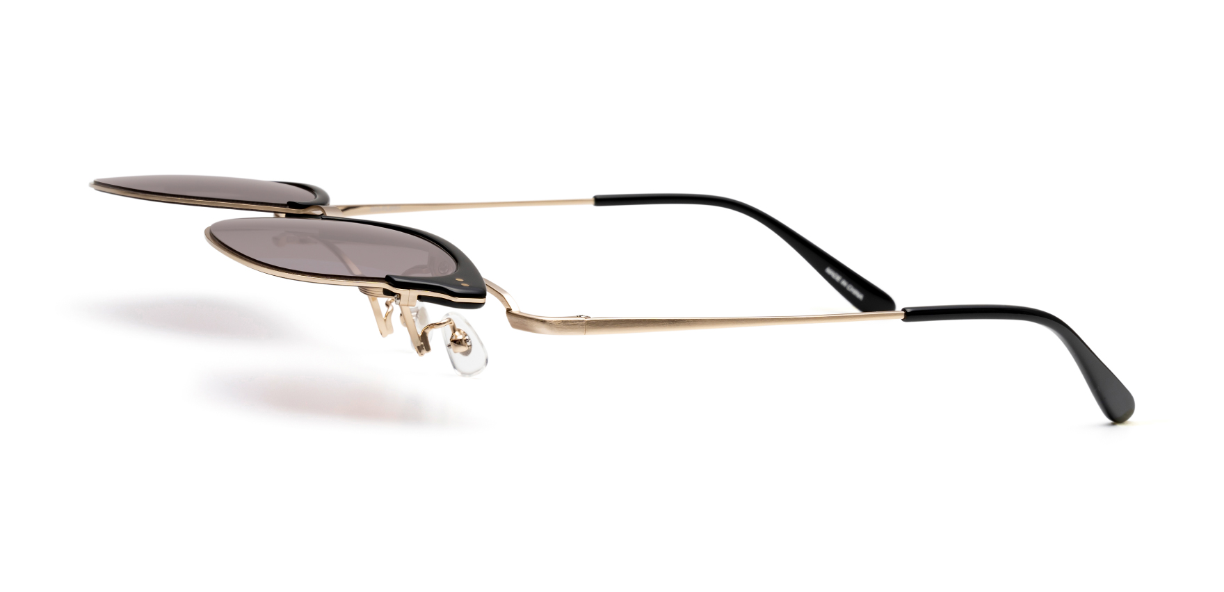 今までの跳ね上げサングラスにはないクラシカルなスタイルで、室内や運転など、日常の様々なシーンで気軽にかけられます。跳ね上げ部分はフロントの前後リムの位置を狭くしたことで一体感が生まれ、さらに10万回のテストをクリアしてスムーズ開閉になっています。ISG-FLIP01は、サーモントと呼ばれる形で存在感を持ち合わせながらフレームの厚みを抑え、軽やかで掛けやすいモデルとなっているサーモントフレームのウェリントンタイプです。跳ね上げた時のメタルにも装飾を施し、クラシック感を演出してくれます。