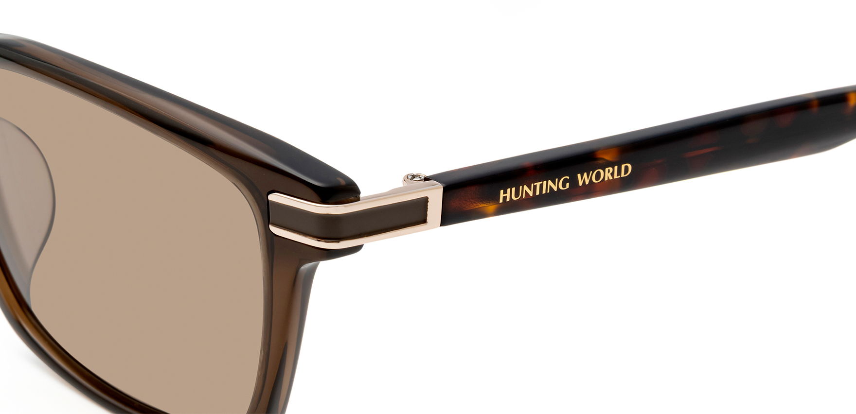 「自然との共生」をブランドポリシーとするHUNTING WORLD(ハンティングワールド)は、1965年に冒険家ロバート・M・リーによってニューヨークで設立された、幅広い世代の支持を集めるライフスタイル・ブランドです。そんなHUNTING WORLDから、メンズ用偏光サングラスが登場。眼鏡市場でしか買えない、オリジナルの限定モデルです。HTW-1011Pは、落ち着いた大人のセルデザインです。ヨロイ部分に施した飾りが、英国風の品格を醸し出し、洗練された印象を演出します。
