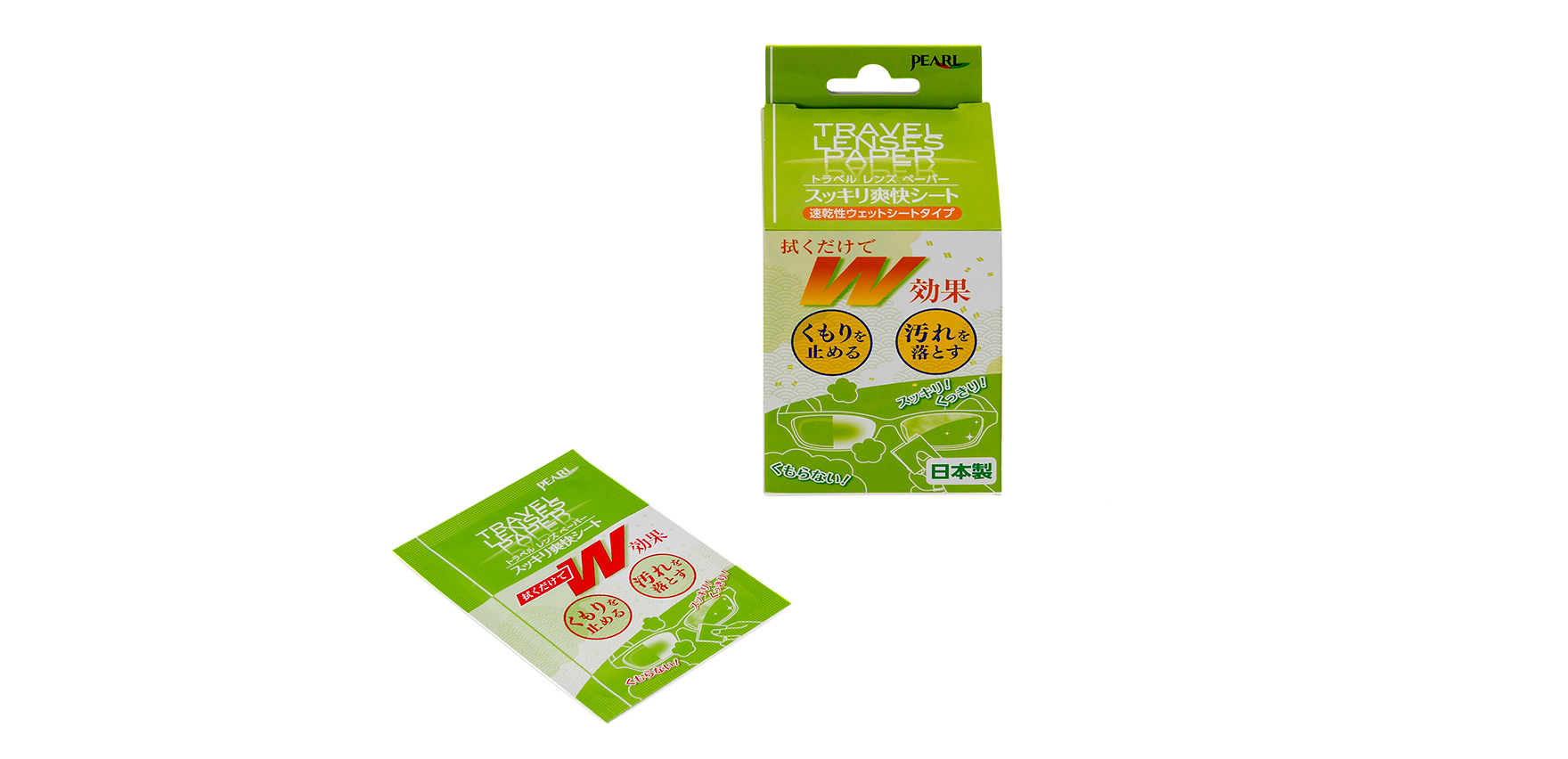 拭くだけで汚れを落とし、くもりを防止するウェットシートタイプのレンズケア用品です。