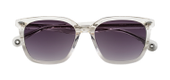 “バカンスとデイリーユースの融合”をコンセプトに掲げる〈MAD JOURNEY(マッドジャーニー)〉のクリアフレームはクリーンな雰囲気たっぷり。スクエアベースのウェリントンシェイプでモダンな印象を与える。透明度の高いアセテート素材のフレームにあしらったメタルパーツに、デザインへのこだわりを感じる。