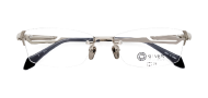 「大人顔がベースにあって直線が多いのがクールタイプ。知的なスクエアタイプが直球で似合います。セルフレームでもメタルフレームでも良く似合います。ただし極端に縦幅が狭いものを選択すると、クールタイプの特徴が強調されすぎてしまう場合があります。今っぽく洗練させるなら、ぐっとスクエア感のある“SLV-527”がおすすめ。それもリムレスというのがモダンで、耳にかけるテンプルにはシルバーの光沢感を引き立たせるカッティングの加工入り。都会的な一本です」