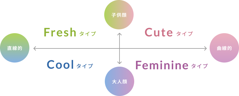 「子供顔×直線的=Fresh」 「子供顔×曲線的=Cute」