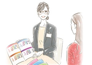 診断チェックボードを使ってお客様と一緒に顔タイプを診断いたします。